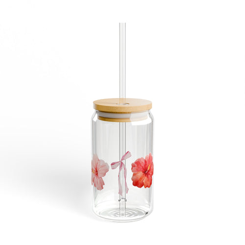 Bow/Hibiscus Sipper Glass, 16oz